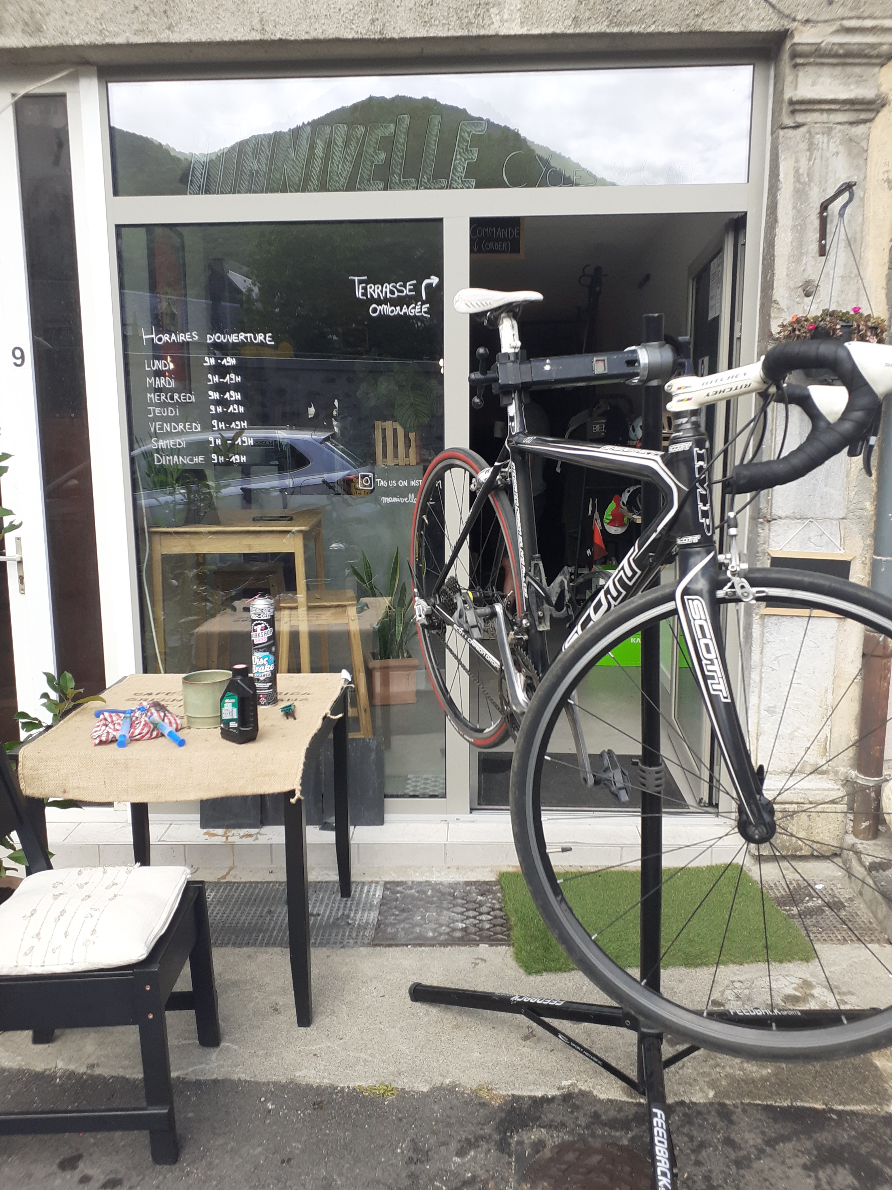 Un endroit si agréable, un bon café et un service amical. Merci d'avoir réparé mon vélo.
